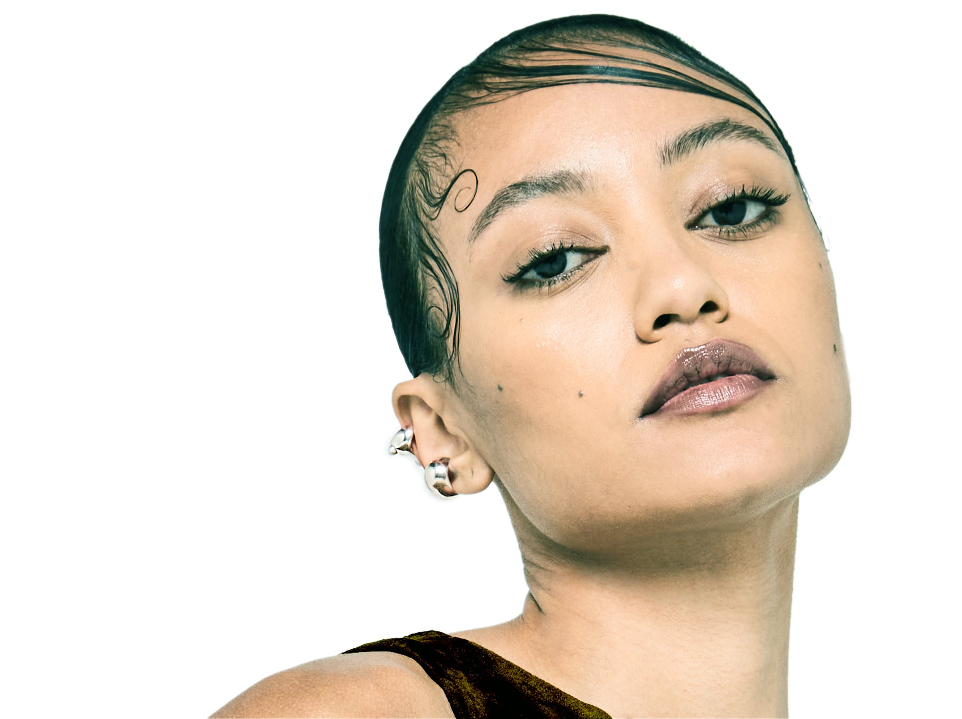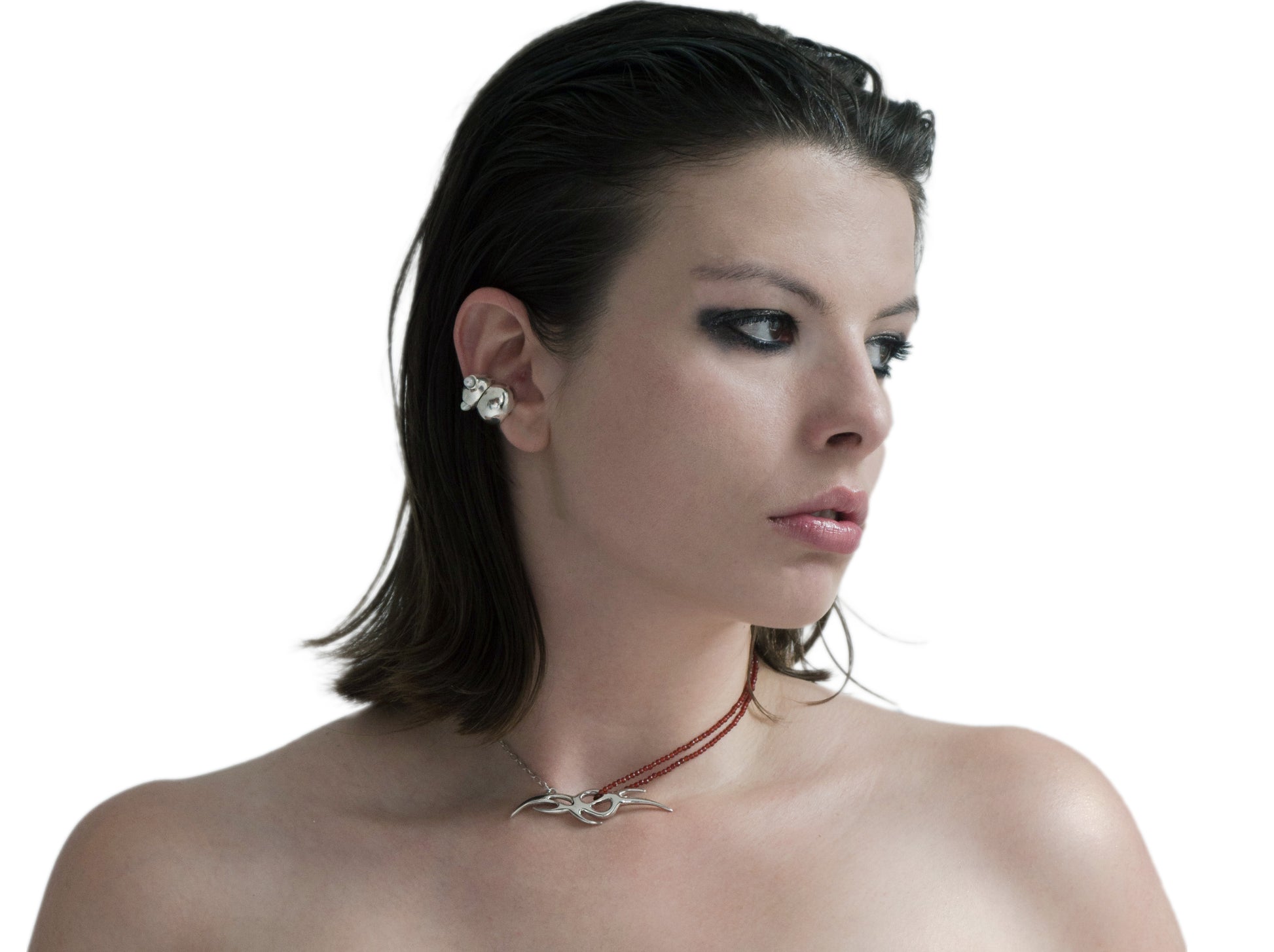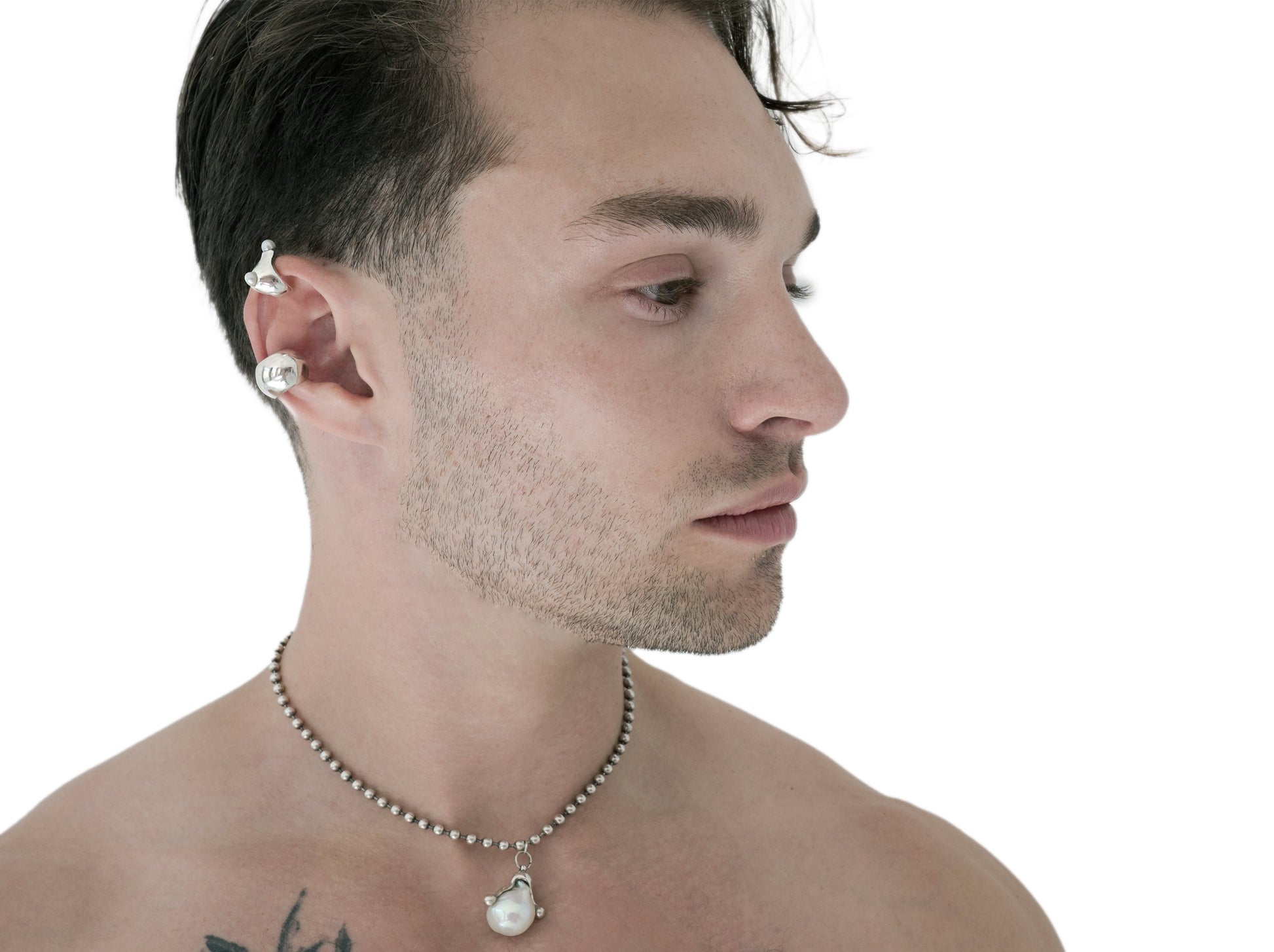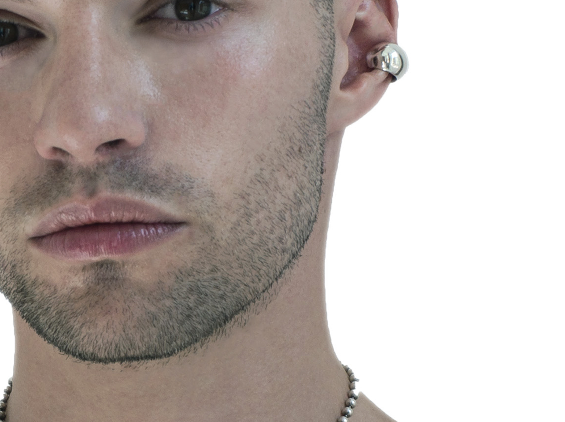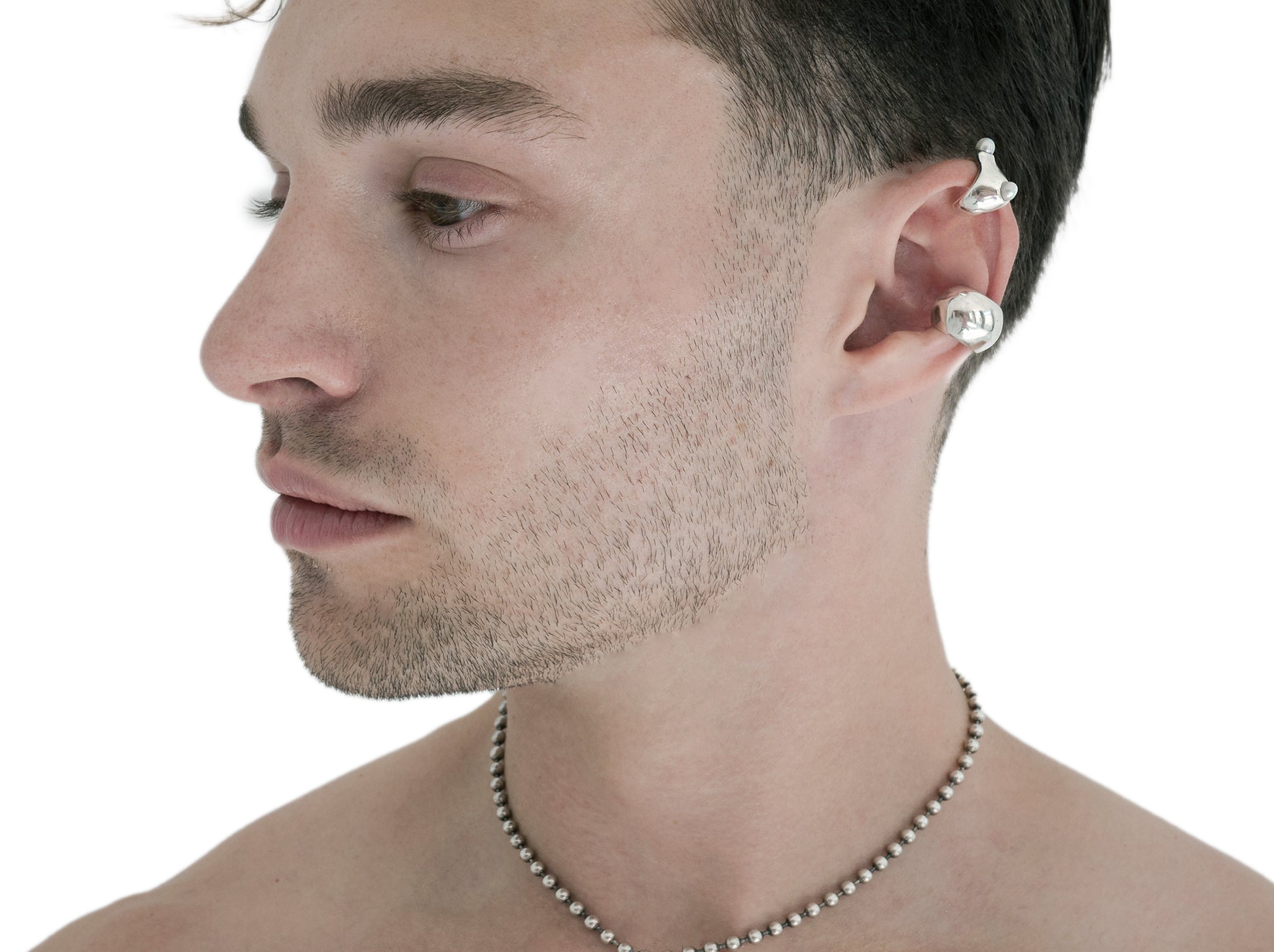 Round silver ear cuff.