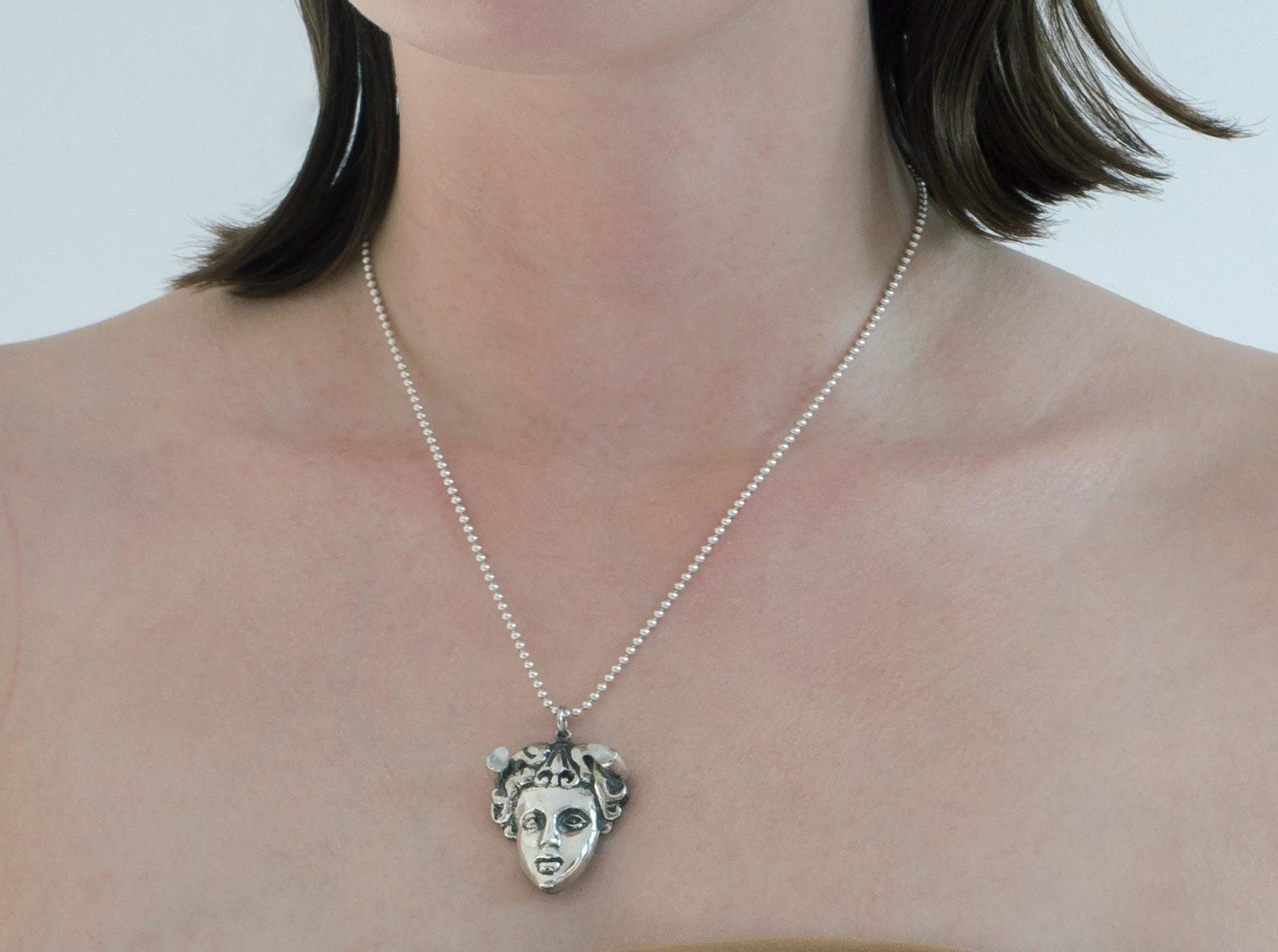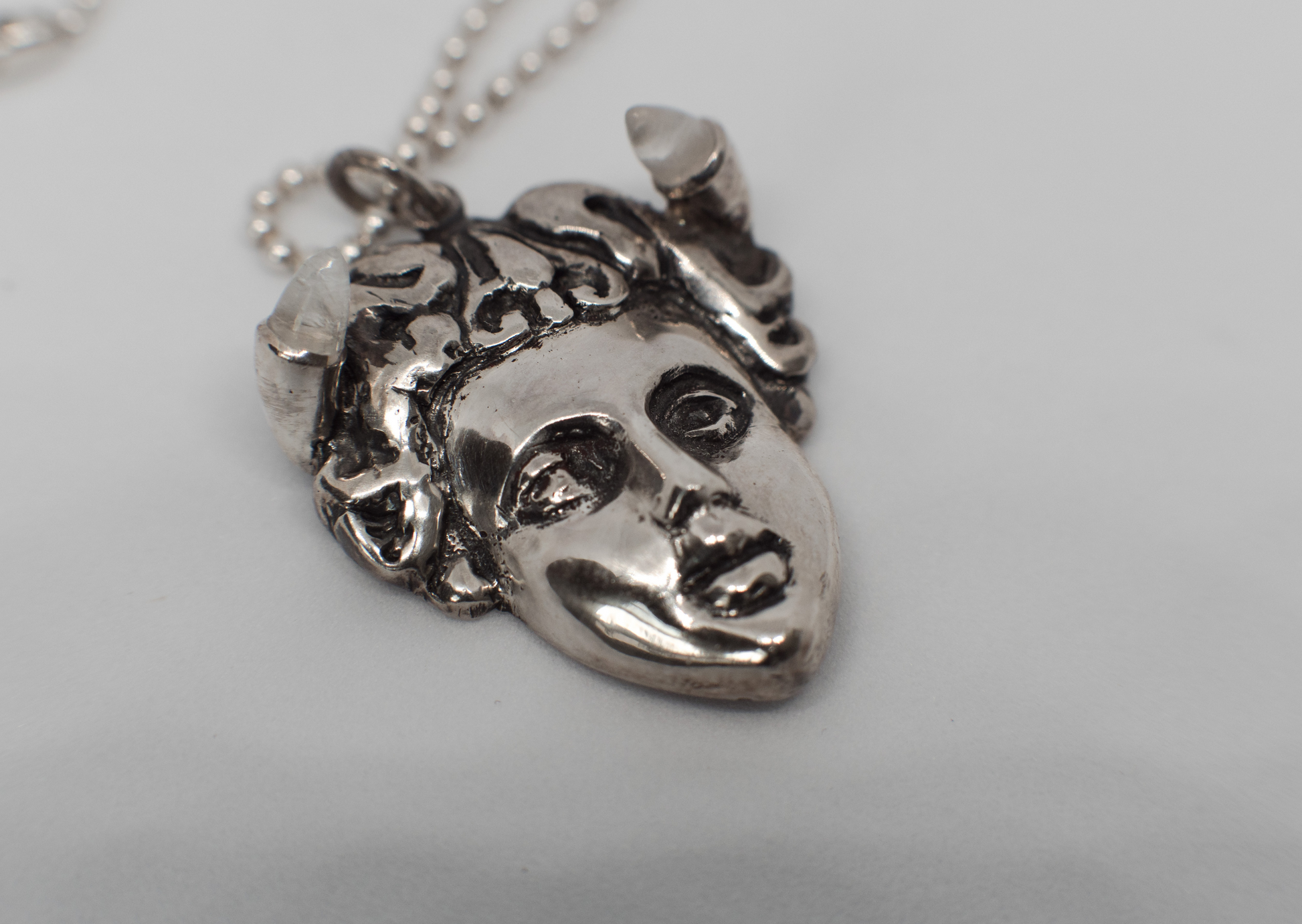 Since Ancient Greece, the snake-haired Gorgon has been a sexualised symbol of women's rage. Subtle yet sultry - this pendant is a character sketch of pre-curse Gorgona in silver, adorned with horns - a reminder of the timeless myth of a rape victim turned into a monster.